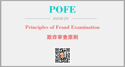 英文缩略词“POFE”经常作为“Principles of Fraud Examination”的英文缩写来使用,中文表示:“欺诈审查原则”。本文将详细介绍英文缩写词POFE所代表英文单词,其对应的中文拼音、详细解释以及在英语中的流行度。此外,还有关于缩略词POFE的分类、应用领域及相关应用示例等。