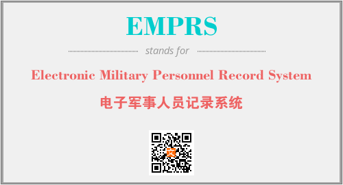 以上为Electronic Military Personnel Record System英文缩略词EMPRS的中文解释,以及该英文缩写在英语的流行度、分类和应用领域方面的信息。