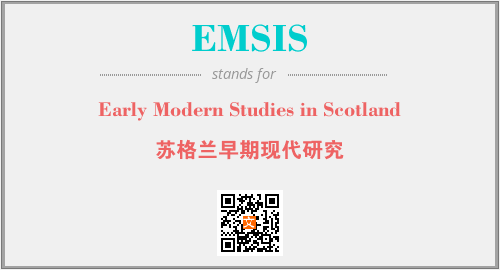 上述内容是“Early Modern Studies in Scotland”作为“EMSIS”的缩写,解释为“苏格兰早期现代研究”时的信息,以及英文缩略词EMSIS所代表的英文单词,其对应的中文拼音、详细解释以及在英文中的流行度和相关分类、应用领域及应用示例等。