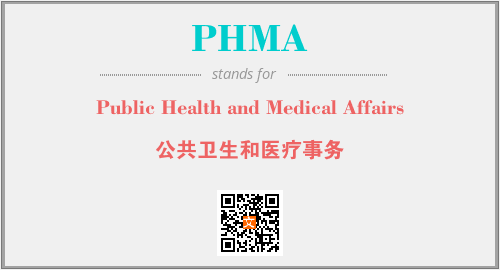 上述内容是“Public Health and Medical Affairs”作为“PHMA”的缩写,解释为“公共卫生和医疗事务”时的信息,以及英文缩略词PHMA所代表的英文单词,其对应的中文拼音、详细解释以及在英文中的流行度和相关分类、应用领域及应用示例等。