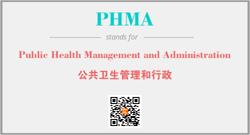 上述内容是“Public Health Management and Administration”作为“PHMA”的缩写,解释为“公共卫生管理和行政”时的信息,以及英文缩略词PHMA所代表的英文单词,其对应的中文拼音、详细解释以及在英文中的流行度和相关分类、应用领域及应用示例等。