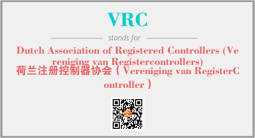 上述内容是“Dutch Association of Registered Controllers (Vereniging van Registercontrollers)”作为“VRC”的缩写,解释为“荷兰注册控制器协会(Vereniging van RegisterController)”时的信息,以及英文缩略词VRC所代表的英文单词,其对应的中文拼音、详细解释以及在英文中的流行度和相关分类、应用领域及应用示例等。