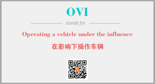 上述内容是“Operating a vehicle under the influence”作为“OVI”的缩写,解释为“在影响下操作车辆”时的信息,以及英文缩略词OVI所代表的英文单词,其对应的中文拼音、详细解释以及在英文中的流行度和相关分类、应用领域及应用示例等。