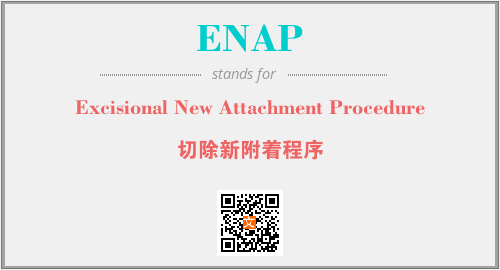 上述内容是“Excisional New Attachment Procedure”作为“ENAP”的缩写,解释为“切除新附着程序”时的信息,以及英文缩略词ENAP所代表的英文单词,其对应的中文拼音、详细解释以及在英文中的流行度和相关分类、应用领域及应用示例等。