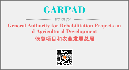 上述内容是“General Authority for Rehabilitation Projects and Agricultural Development”作为“GARPAD”的缩写,解释为“恢复项目和农业发展总局”时的信息,以及英文缩略词GARPAD所代表的英文单词,其对应的中文拼音、详细解释以及在英文中的流行度和相关分类、应用领域及应用示例等。