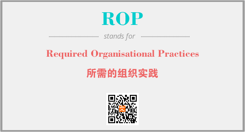 英文缩略词“ROP”经常作为“Required Organisational Practices”的英文缩写来使用,中文表示:“所需的组织实践”。本文将详细介绍英文缩写词ROP所代表英文单词,其对应的中文拼音、详细解释以及在英语中的流行度。此外,还有关于缩略词ROP的分类、应用领域及相关应用示例等。