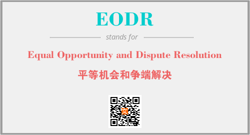 上述内容是“Equal Opportunity and Dispute Resolution”作为“EODR”的缩写,解释为“平等机会和争端解决”时的信息,以及英文缩略词EODR所代表的英文单词,其对应的中文拼音、详细解释以及在英文中的流行度和相关分类、应用领域及应用示例等。