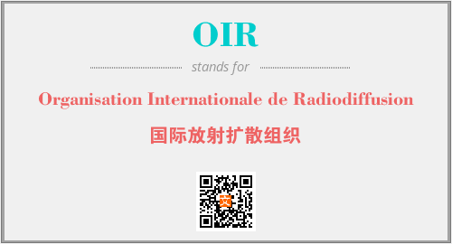 英文缩略词“OIR”经常作为“Organisation Internationale de Radiodiffusion”的英文缩写来使用,中文表示:“国际放射扩散组织”。本文将详细介绍英文缩写词OIR所代表英文单词,其对应的中文拼音、详细解释以及在英语中的流行度。此外,还有关于缩略词OIR的分类、应用领域及相关应用示例等。