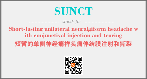 以上为Short-lasting unilateral neuralgiform headache with conjunctival injection and tearing英文缩略词SUNCT的中文解释,以及该英文缩写在英语的流行度、分类和应用领域方面的信息。