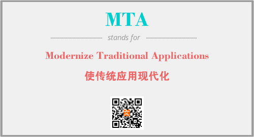 英文缩略词“MTA”经常作为“Modernize Traditional Applications”的英文缩写来使用,中文表示:“使传统应用现代化”。本文将详细介绍英文缩写词MTA所代表英文单词,其对应的中文拼音、详细解释以及在英语中的流行度。此外,还有关于缩略词MTA的分类、应用领域及相关应用示例等。