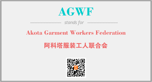 上述内容是“Akota Garment Workers Federation”作为“AGWF”的缩写,解释为“阿科塔服装工人联合会”时的信息,以及英文缩略词AGWF所代表的英文单词,其对应的中文拼音、详细解释以及在英文中的流行度和相关分类、应用领域及应用示例等。