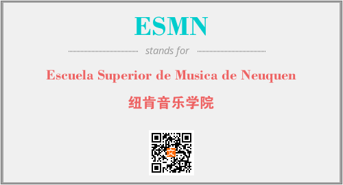 上述内容是“Escuela Superior de Musica de Neuquen”作为“ESMN”的缩写,解释为“纽肯音乐学院”时的信息,以及英文缩略词ESMN所代表的英文单词,其对应的中文拼音、详细解释以及在英文中的流行度和相关分类、应用领域及应用示例等。