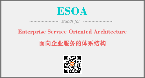 英文缩略词“ESOA”经常作为“Enterprise Service Oriented Architecture”的英文缩写来使用,中文表示:“面向企业服务的体系结构”。本文将详细介绍英文缩写词ESOA所代表英文单词,其对应的中文拼音、详细解释以及在英语中的流行度。此外,还有关于缩略词ESOA的分类、应用领域及相关应用示例等。