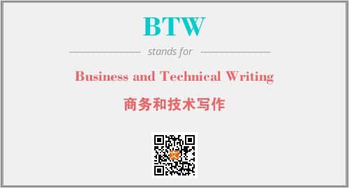 英文缩略词“BTW”经常作为“Business and Technical Writing”的英文缩写来使用,中文表示:“商务和技术写作”。本文将详细介绍英文缩写词BTW所代表英文单词,其对应的中文拼音、详细解释以及在英语中的流行度。此外,还有关于缩略词BTW的分类、应用领域及相关应用示例等。