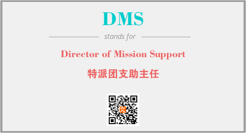 上述内容是“Director of Mission Support”作为“DMS”的缩写,解释为“特派团支助主任”时的信息,以及英文缩略词DMS所代表的英文单词,其对应的中文拼音、详细解释以及在英文中的流行度和相关分类、应用领域及应用示例等。