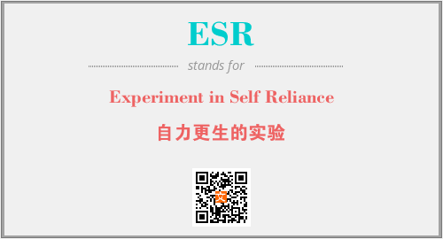 英文缩略词“ESR”经常作为“Experiment in Self Reliance”的英文缩写来使用,中文表示:“自力更生的实验”。本文将详细介绍英文缩写词ESR所代表英文单词,其对应的中文拼音、详细解释以及在英语中的流行度。此外,还有关于缩略词ESR的分类、应用领域及相关应用示例等。