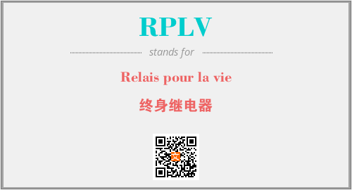 英文缩略词“RPLV”经常作为“Relais pour la vie”的英文缩写来使用,中文表示:“终身继电器”。本文将详细介绍英文缩写词RPLV所代表英文单词,其对应的中文拼音、详细解释以及在英语中的流行度。此外,还有关于缩略词RPLV的分类、应用领域及相关应用示例等。