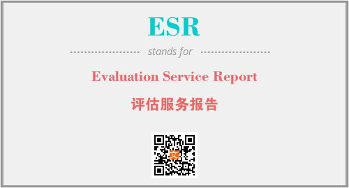 上述内容是“Evaluation Service Report”作为“ESR”的缩写,解释为“评估服务报告”时的信息,以及英文缩略词ESR所代表的英文单词,其对应的中文拼音、详细解释以及在英文中的流行度和相关分类、应用领域及应用示例等。