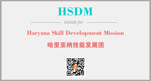 上述内容是“Haryana Skill Development Mission”作为“HSDM”的缩写,解释为“哈里亚纳技能发展团”时的信息,以及英文缩略词HSDM所代表的英文单词,其对应的中文拼音、详细解释以及在英文中的流行度和相关分类、应用领域及应用示例等。