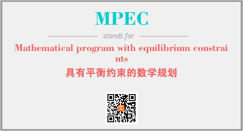 英文缩略词“MPEC”经常作为“Mathematical program with equilibrium constraints”的英文缩写来使用,中文表示:“具有平衡约束的数学规划”。本文将详细介绍英文缩写词MPEC所代表英文单词,其对应的中文拼音、详细解释以及在英语中的流行度。此外,还有关于缩略词MPEC的分类、应用领域及相关应用示例等。
