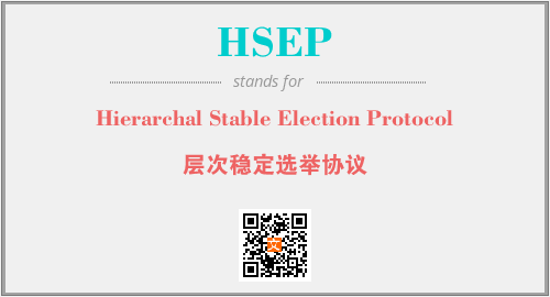 上述内容是“Hierarchal Stable Election Protocol”作为“HSEP”的缩写,解释为“层次稳定选举协议”时的信息,以及英文缩略词HSEP所代表的英文单词,其对应的中文拼音、详细解释以及在英文中的流行度和相关分类、应用领域及应用示例等。