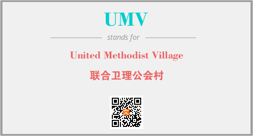 上述内容是“United Methodist Village”作为“UMV”的缩写,解释为“联合卫理公会村”时的信息,以及英文缩略词UMV所代表的英文单词,其对应的中文拼音、详细解释以及在英文中的流行度和相关分类、应用领域及应用示例等。