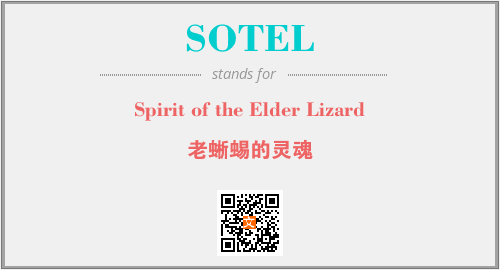 上述内容是“Spirit of the Elder Lizard”作为“SOTEL”的缩写,解释为“老蜥蜴的灵魂”时的信息,以及英文缩略词SOTEL所代表的英文单词,其对应的中文拼音、详细解释以及在英文中的流行度和相关分类、应用领域及应用示例等。