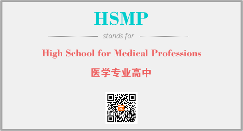 以上为High School for Medical Professions英文缩略词HSMP的中文解释,以及该英文缩写在英语的流行度、分类和应用领域方面的信息。