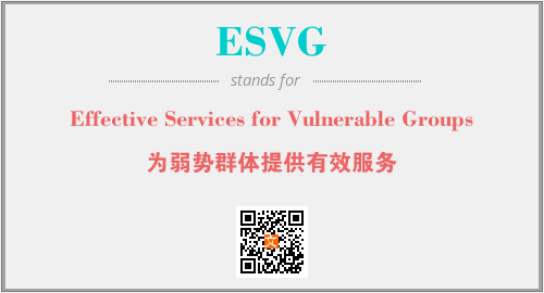 上述内容是“Effective Services for Vulnerable Groups”作为“ESVG”的缩写,解释为“为弱势群体提供有效服务”时的信息,以及英文缩略词ESVG所代表的英文单词,其对应的中文拼音、详细解释以及在英文中的流行度和相关分类、应用领域及应用示例等。