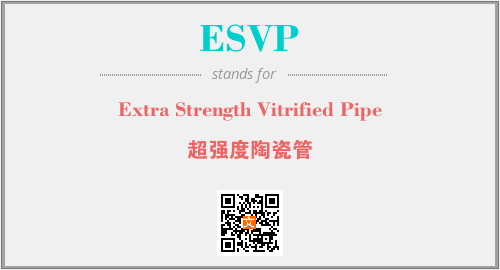 以上为Extra Strength Vitrified Pipe英文缩略词ESVP的中文解释,以及该英文缩写在英语的流行度、分类和应用领域方面的信息。