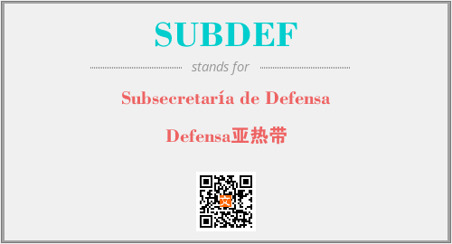 上述内容是“Subsecretaría de Defensa”作为“SUBDEF”的缩写,解释为“Defensa亚热带”时的信息,以及英文缩略词SUBDEF所代表的英文单词,其对应的中文拼音、详细解释以及在英文中的流行度和相关分类、应用领域及应用示例等。