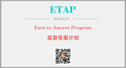 以上为Earn to Answer Program英文缩略词ETAP的中文解释,以及该英文缩写在英语的流行度、分类和应用领域方面的信息。