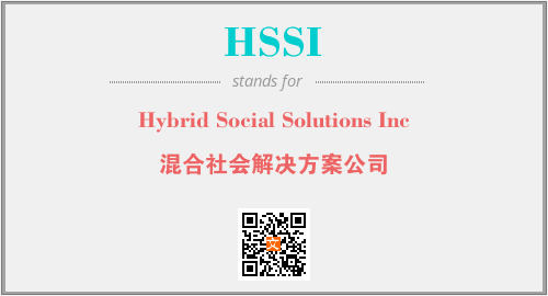 上述内容是“Hybrid Social Solutions Inc”作为“HSSI”的缩写,解释为“混合社会解决方案公司”时的信息,以及英文缩略词HSSI所代表的英文单词,其对应的中文拼音、详细解释以及在英文中的流行度和相关分类、应用领域及应用示例等。