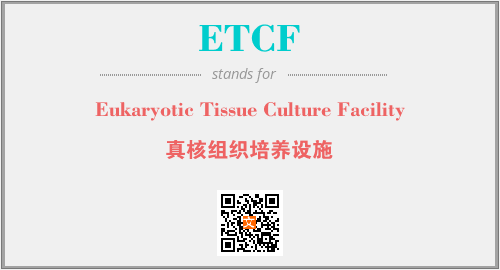 英文缩略词“ETCF”经常作为“Eukaryotic Tissue Culture Facility”的英文缩写来使用,中文表示:“真核组织培养设施”。本文将详细介绍英文缩写词ETCF所代表英文单词,其对应的中文拼音、详细解释以及在英语中的流行度。此外,还有关于缩略词ETCF的分类、应用领域及相关应用示例等。
