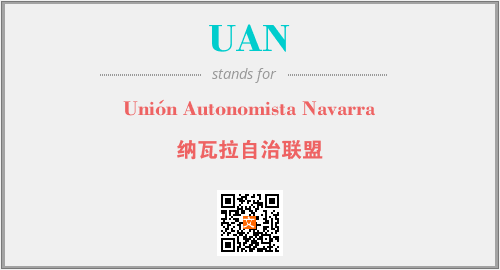 英文缩略词“UAN”经常作为“Unión Autonomista Navarra”的英文缩写来使用,中文表示:“纳瓦拉自治联盟”。本文将详细介绍英文缩写词UAN所代表英文单词,其对应的中文拼音、详细解释以及在英语中的流行度。此外,还有关于缩略词UAN的分类、应用领域及相关应用示例等。