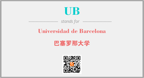 上述内容是“Universidad de Barcelona”作为“UB”的缩写,解释为“巴塞罗那大学”时的信息,以及英文缩略词UB所代表的英文单词,其对应的中文拼音、详细解释以及在英文中的流行度和相关分类、应用领域及应用示例等。