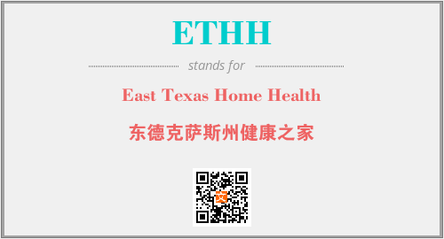 上述内容是“East Texas Home Health”作为“ETHH”的缩写,解释为“东德克萨斯州健康之家”时的信息,以及英文缩略词ETHH所代表的英文单词,其对应的中文拼音、详细解释以及在英文中的流行度和相关分类、应用领域及应用示例等。