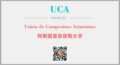 上述内容是“Unión de Campesinos Asturianos”作为“UCA”的缩写,解释为“阿斯图里亚诺斯大学”时的信息,以及英文缩略词UCA所代表的英文单词,其对应的中文拼音、详细解释以及在英文中的流行度和相关分类、应用领域及应用示例等。