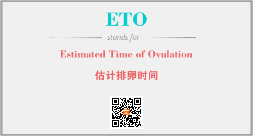 英文缩略词“ETO”经常作为“Estimated Time of Ovulation”的英文缩写来使用,中文表示:“估计排卵时间”。本文将详细介绍英文缩写词ETO所代表英文单词,其对应的中文拼音、详细解释以及在英语中的流行度。此外,还有关于缩略词ETO的分类、应用领域及相关应用示例等。