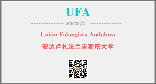 上述内容是“Unión Falangista Andaluza”作为“UFA”的缩写,解释为“安达卢扎法兰吉斯塔大学”时的信息,以及英文缩略词UFA所代表的英文单词,其对应的中文拼音、详细解释以及在英文中的流行度和相关分类、应用领域及应用示例等。