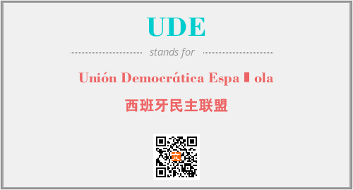 英文缩略词“UDE”经常作为“Unión Democrática Española”的英文缩写来使用,中文表示:“西班牙民主联盟”。本文将详细介绍英文缩写词UDE所代表英文单词,其对应的中文拼音、详细解释以及在英语中的流行度。此外,还有关于缩略词UDE的分类、应用领域及相关应用示例等。