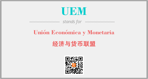 上述内容是“Unión Económica y Monetaria”作为“UEM”的缩写,解释为“经济与货币联盟”时的信息,以及英文缩略词UEM所代表的英文单词,其对应的中文拼音、详细解释以及在英文中的流行度和相关分类、应用领域及应用示例等。