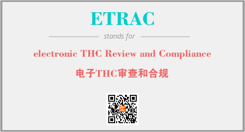 英文缩略词“ETRAC”经常作为“electronic THC Review and Compliance”的英文缩写来使用,中文表示:“电子THC审查和合规”。本文将详细介绍英文缩写词ETRAC所代表英文单词,其对应的中文拼音、详细解释以及在英语中的流行度。此外,还有关于缩略词ETRAC的分类、应用领域及相关应用示例等。
