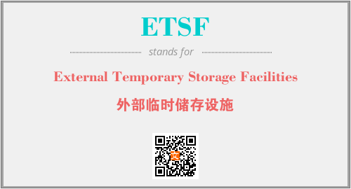 上述内容是“External Temporary Storage Facilities”作为“ETSF”的缩写,解释为“外部临时储存设施”时的信息,以及英文缩略词ETSF所代表的英文单词,其对应的中文拼音、详细解释以及在英文中的流行度和相关分类、应用领域及应用示例等。