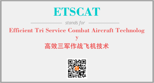 英文缩略词“ETSCAT”经常作为“Efficient Tri Service Combat Aircraft Technology”的英文缩写来使用,中文表示:“高效三军作战飞机技术”。本文将详细介绍英文缩写词ETSCAT所代表英文单词,其对应的中文拼音、详细解释以及在英语中的流行度。此外,还有关于缩略词ETSCAT的分类、应用领域及相关应用示例等。
