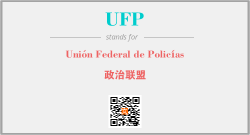 上述内容是“Unión Federal de Policías”作为“UFP”的缩写,解释为“政治联盟”时的信息,以及英文缩略词UFP所代表的英文单词,其对应的中文拼音、详细解释以及在英文中的流行度和相关分类、应用领域及应用示例等。