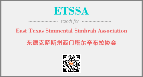 以上为East Texas Simmental Simbrah Association英文缩略词ETSSA的中文解释,以及该英文缩写在英语的流行度、分类和应用领域方面的信息。
