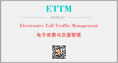 英文缩略词“ETTM”经常作为“Electronics Toll Traffic Management”的英文缩写来使用,中文表示:“电子收费与交通管理”。本文将详细介绍英文缩写词ETTM所代表英文单词,其对应的中文拼音、详细解释以及在英语中的流行度。此外,还有关于缩略词ETTM的分类、应用领域及相关应用示例等。