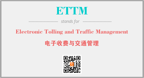 英文缩略词“ETTM”经常作为“Electronic Tolling and Traffic Management”的英文缩写来使用,中文表示:“电子收费与交通管理”。本文将详细介绍英文缩写词ETTM所代表英文单词,其对应的中文拼音、详细解释以及在英语中的流行度。此外,还有关于缩略词ETTM的分类、应用领域及相关应用示例等。