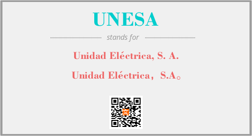 上述内容是“Unidad Eléctrica, S. A.”作为“UNESA”的缩写,解释为“Unidad Eléctrica,S.A。”时的信息,以及英文缩略词UNESA所代表的英文单词,其对应的中文拼音、详细解释以及在英文中的流行度和相关分类、应用领域及应用示例等。